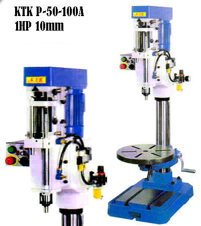Máy khoan 1HP dùng hơi P50100, P5100 KTK Đài Loan có khả năng khoan giống nhau 10mm, 9mm, 8mm, 7mm, 6mm, 5mm, 4mm, 3mm. Nhưng vận hành khác nhau, P5100 không có chức năng xả phôi tự động.