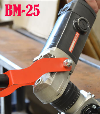 Máy vát mép thép tấm BM-25 JEI - Promotech thiết kế kiểu cầm tay dùng điện 220V, chuyên dùng vát cạnh để hàn ghép nối. đường vát rộng, lớn nhất là 25mm, độ sâu đường vát lớn nhất là 12.5mm, điều chỉnh góc vát khuyến cao 150-750 .